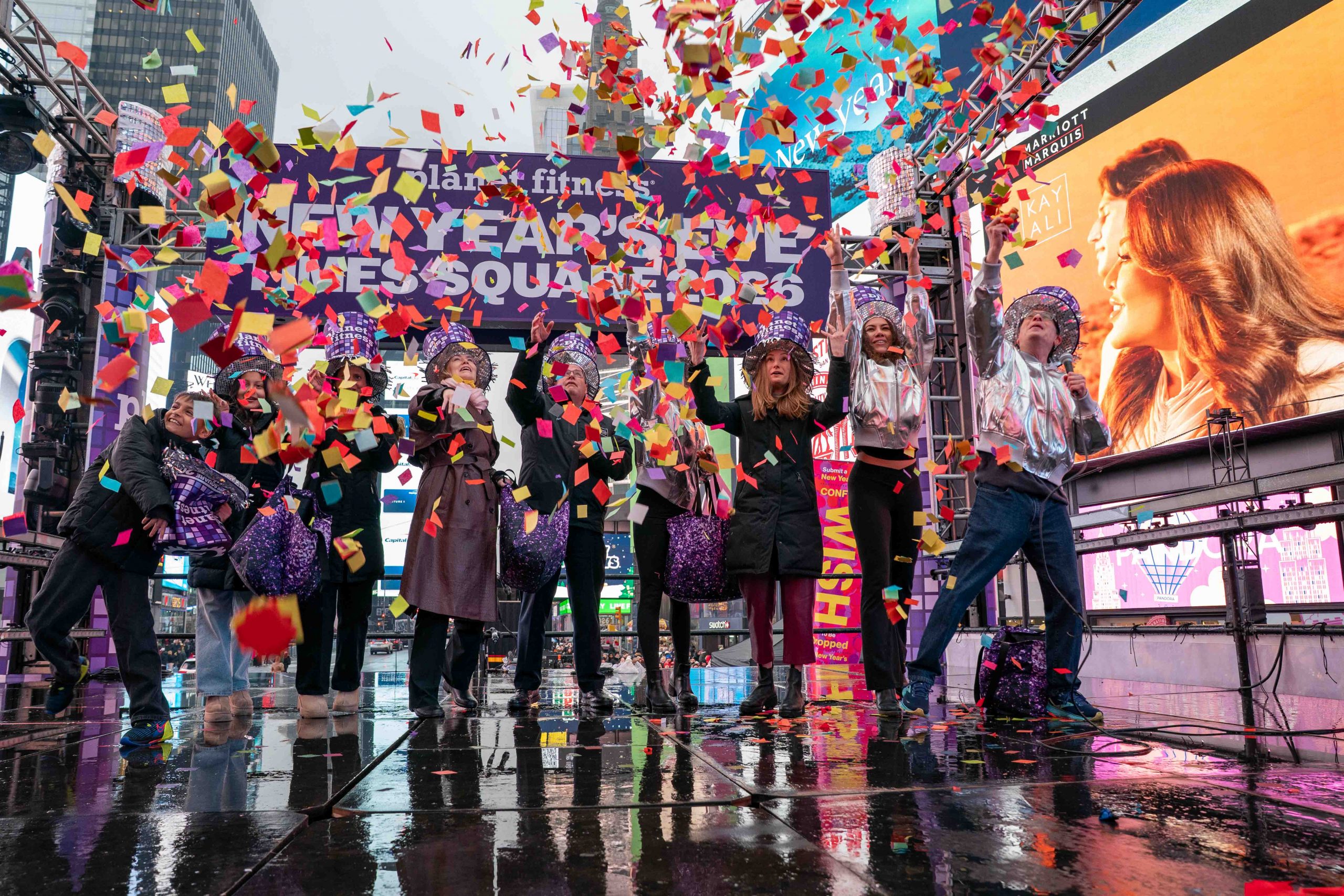 The Times Square Alliance and One Times Square, the co-organizers of Times Square New Year’s Eve, along with presenting sponsor Planet Fitness, release multicolored confetti from the Planet Fitness Center Stage on Broadway. The colorful event to test air worthiness is held in preparation for the release of 3,000 pounds of confetti at midnight on New Year’s Eve.