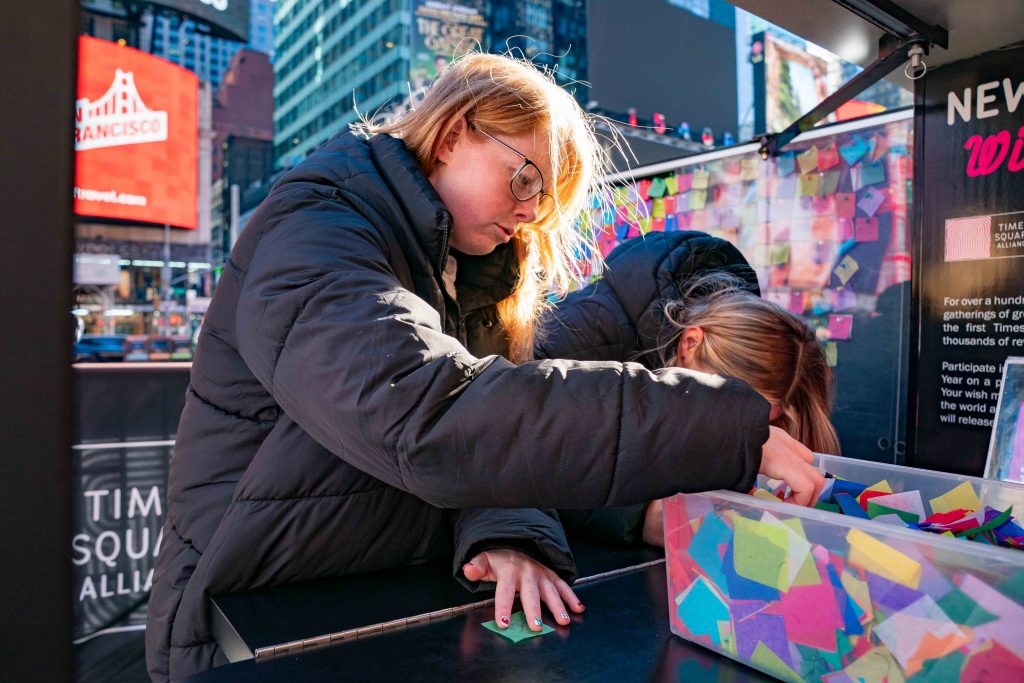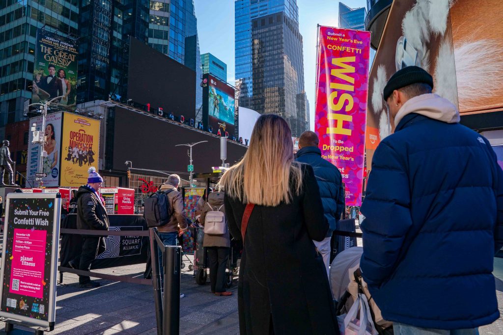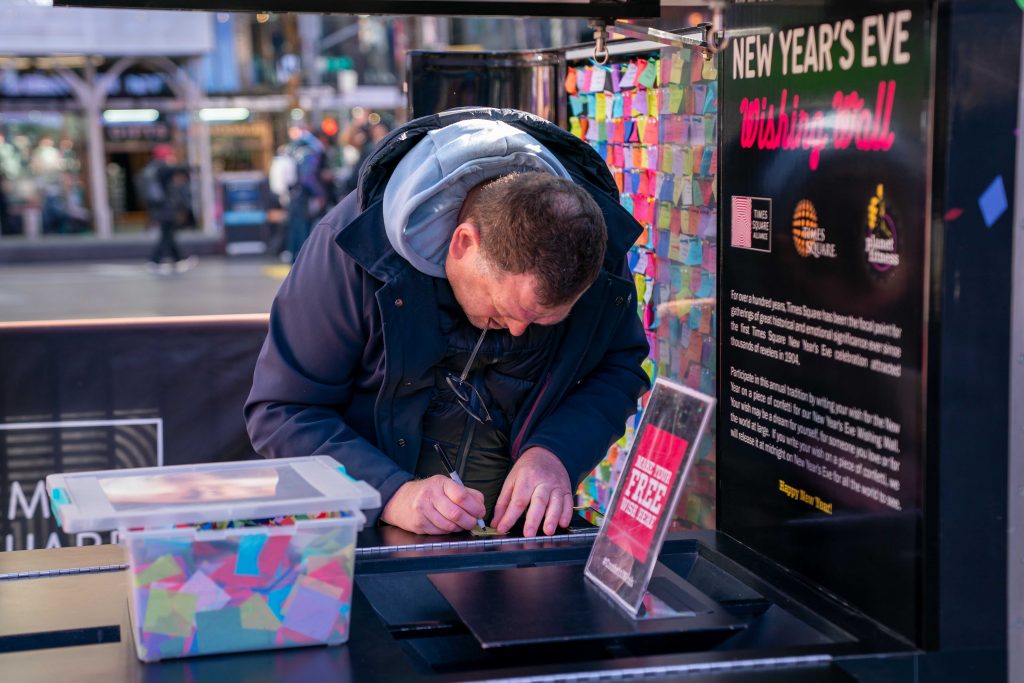The Times Square New Year’s Eve 2026 “Wishing Wall” invites visitors to write a personal wish on confetti to be released over Times Square at midnight as part of the roughly 3,000 lb of confetti that rains down during the iconic ball‑drop, symbolizing hope and optimism for the coming year.